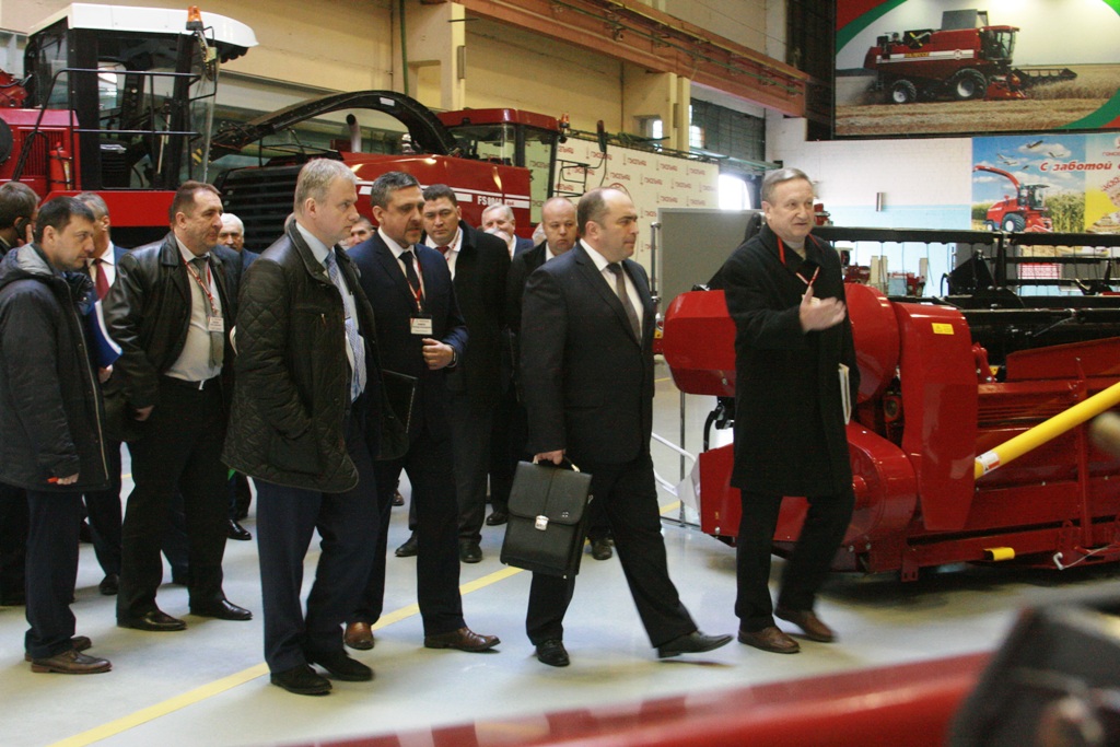 Пояснения в ходе осмотра научно-технического центра комбайностроения и выставки техники ему давали генеральный директор Александр Новиков и заместитель генерального директора по техническим вопросам – главный инженер Виктор Пинчук, директор НТЦК Александр Шантыко и генеральный конструктор Сергей Федорович, другие руководящие работники ОАО «Гомсельмаш». В ходе визита обсуждались вопросы экономической составляющей работы холдинга и его дальнейшего развития, формирования расходов предприятия, ставились задачи по приведению затрат и численности работающих в соответствие с производственной программой, обозначались другие темы.