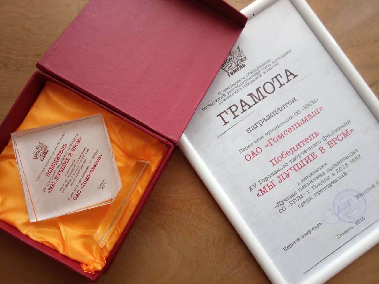 Первый секретарь Гомельского областного комитета ОО «БРСМ» Игорь Завалей вручил Грамоту, свидетельствующую об этой победе, секретарю ПО ОО «БРСМ» ОАО «Гомсельмаш» Ирине Бескровной.