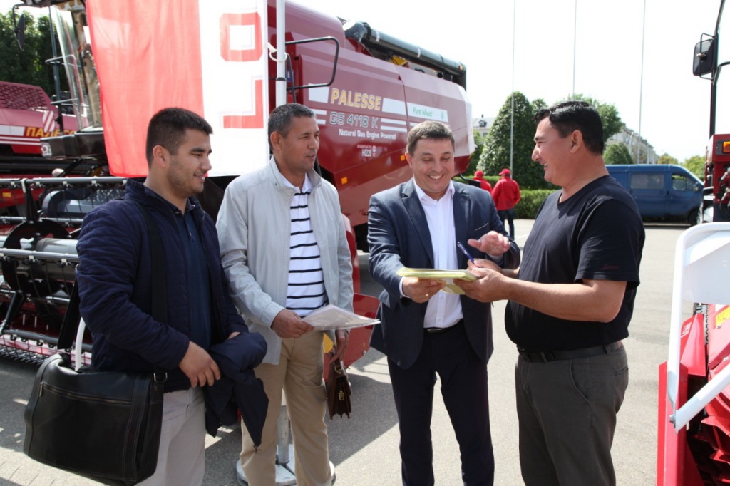 НА СНИМКЕ: первый заместитель директора ДРП ОАО «Гомсельмаш» Игорь Короткевич (второй справа) на выставке гомсельмашевской техники, организованной к I Форуму регионов Беларуси и Узбекистана, вместе с представителями узбекской стороны.