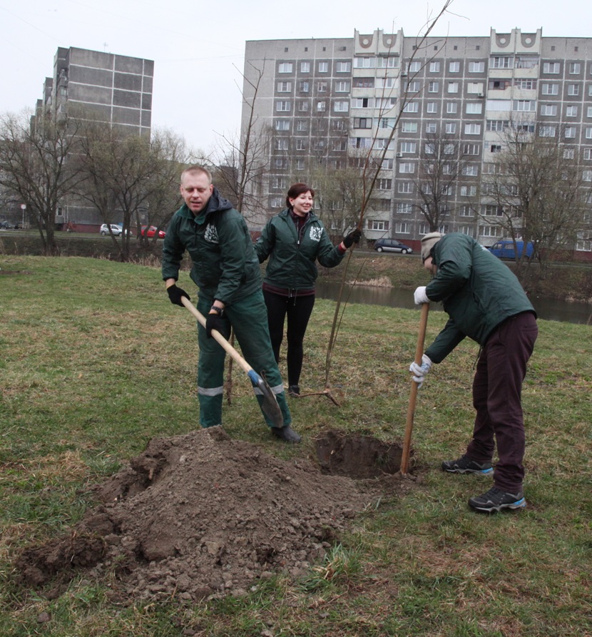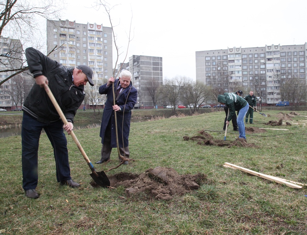 Рабочие зелёного строительства предприятия «Красная гвоздика» подсказывали, как лучше посадить саженец и подвязать его к колышкам, подсыпали чернозём из кузова грузовика, а ещё поливали свежей водой только что высаженные клёники. На высадке активно работала команда ветеранов предприятия под предводительством Петра Ситайло, рядом с которым трудились бывшие гомсельмашевцы Алексей Марченко, Галина Дьяконова, Анастасия Вижунова, лауреат премии Ленинского комсомола Беларуси 1978 года Николай Змушко.